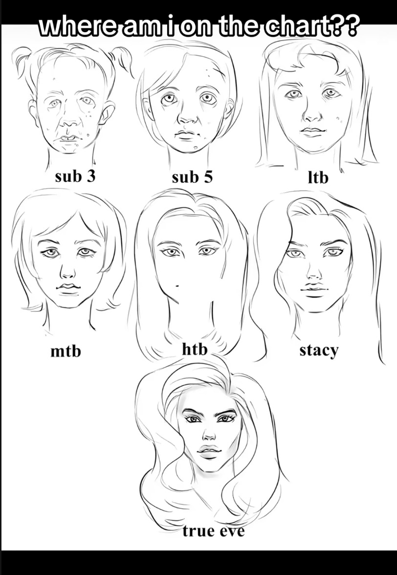 El looksmaxxing té una socialització cruel, començant pel seu llenguatge. Als comentaris es repeteixen alguns termes: sub5, low tier betty, high tier betty, Stacy. El nivell més alt de tots és True Eve, que dibuixen amb un aire entre Cindy Crawford i Rupaul. Altre cop, el llenguatge fuig cap al mite. Així que la dona més guapa de totes, la dona superior, és la veritable Eva? I l’home més home, el veritable Adam?